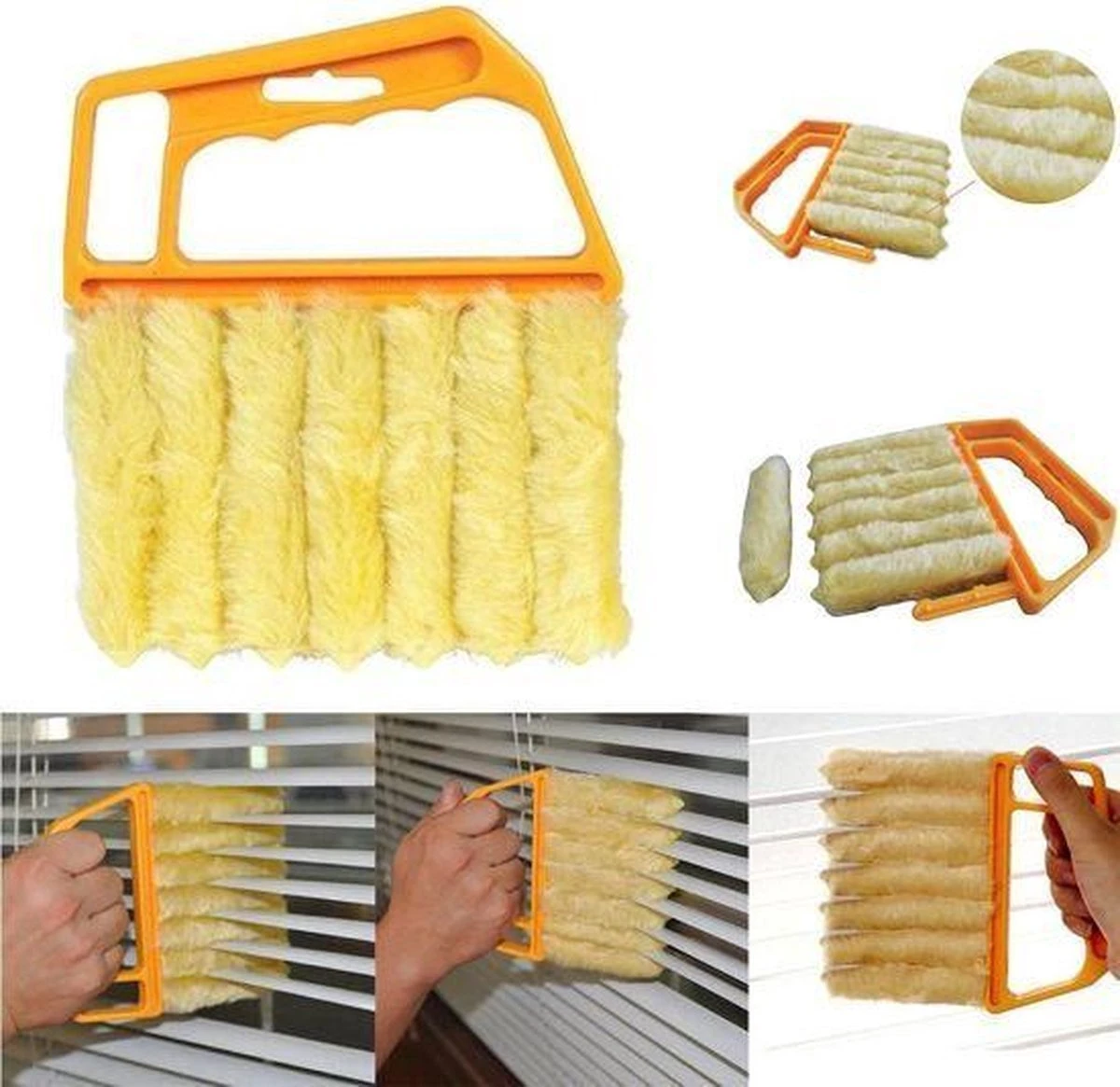 Deze Jaloezie Reiniger bevat 7 stoffers waarmee het schoonmaken van jaloezieën erg gemakkelijk wordt. Klem de stoffers om de lamellen, de jaloezie of de airco heen en haal vervolgens de borstel heen en weer.