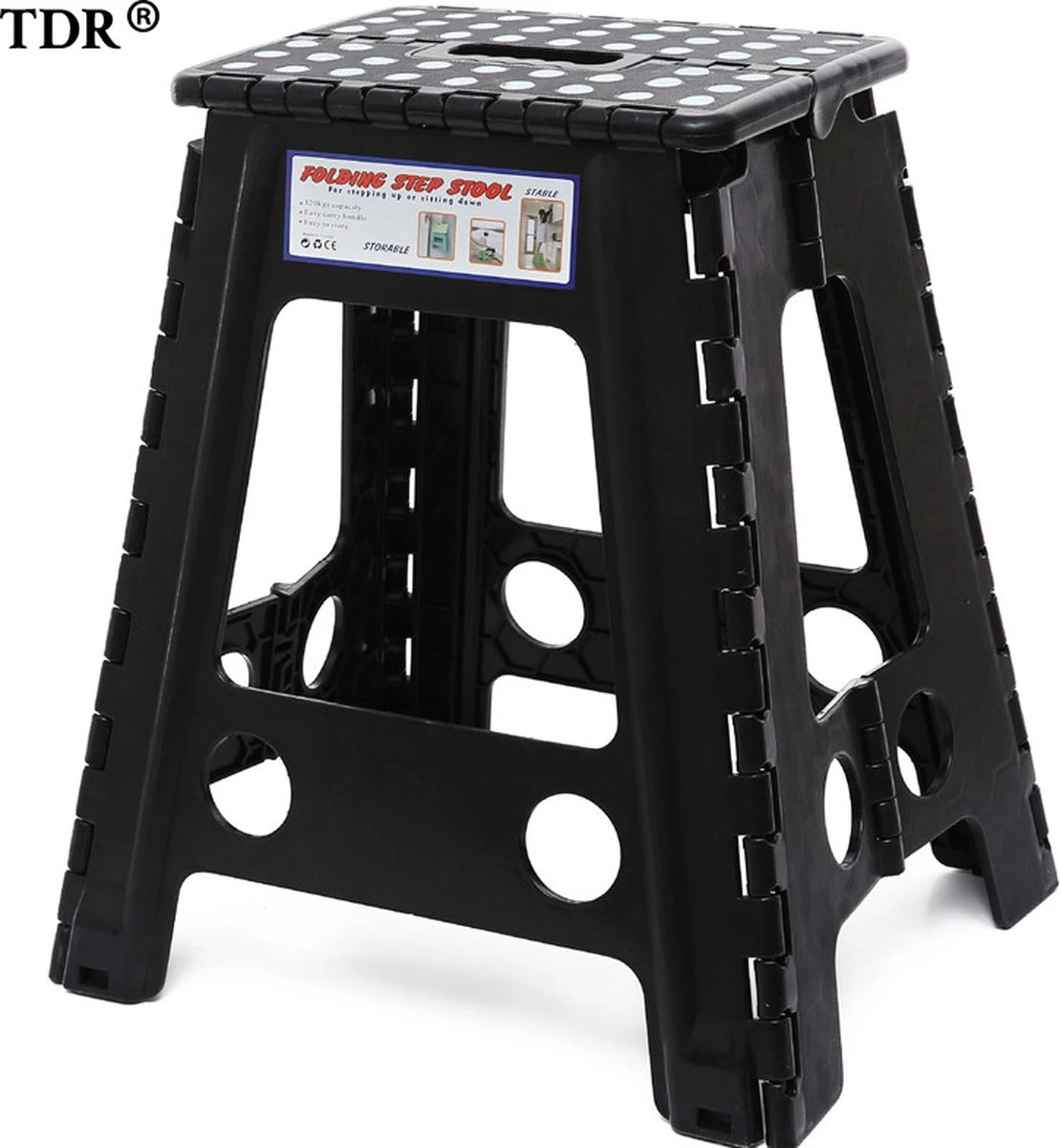 Merkloos Verdikt Kunststof Klapkruk-draagbaar-opvouwbare Kruk-Met Antislip Oppervlak Zwart 29x22cmx45cm